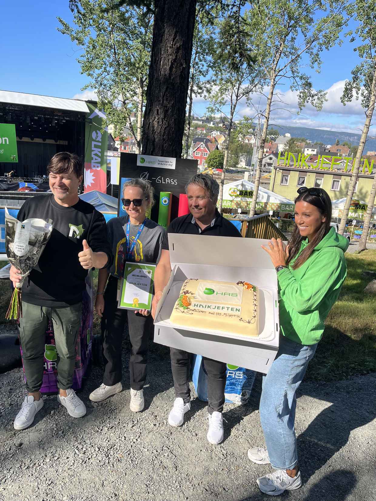 Bare noen timer før det brakte løs i Bromsgårdparken fredag 25. august hadde vi den store gleden av å overraske Haikjeften med HRS Miljøpris for tredje kvartal 2023. I motsetning til de tidligere vinnere som skilte seg ut på sorteringsgrad, vant Haikjeften med bakgrunn i sitt initiativ og store engasjement i forhold til grønne arrangementer og god avfallshåndtering.